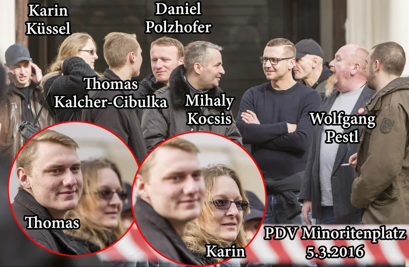 Thomas Kalcher-Cibulka bei einer Kundgebung der „Partei des Volkes“ (PDV) 2016 mit der Frau des wegen Wiederbetätigung verurteilten Neonazis Gottfried Küssel.