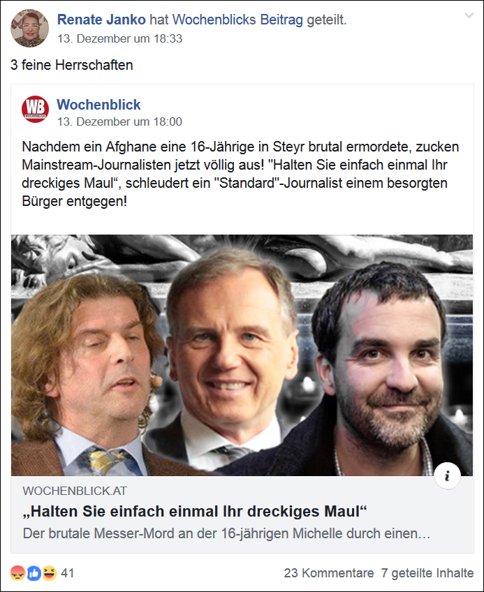Reisinger teilt also einen Artikel eines Herrn Herbert Szlezak, der mit unzähligen FPÖ-Funktionären und Personen aus dem rechtsextremen bzw. antisemitisch-verschwörerischen Spektrum befreundet ist.