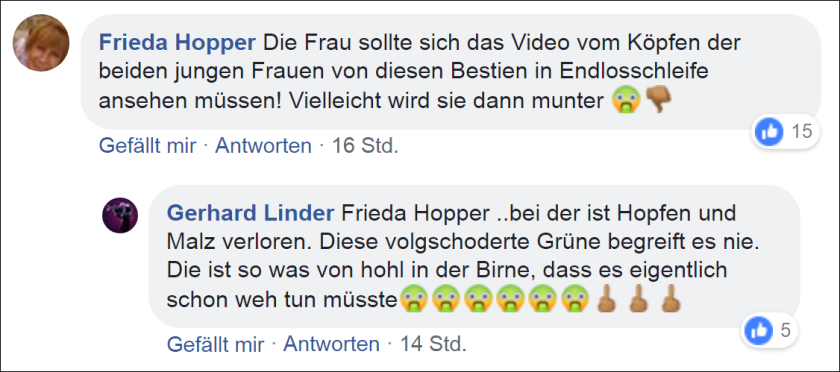 Bei derartigen Aussagen auf nur relevante Ängste besorgter Bürger (die neuen Nazis), kann einem -abgesehen von immer mehr Frust und Unverständnis bis Fassungslosigkeit- schon das Gruseln kommen. Sind denn die Methoden der manipulativen Gedankenkontrolle wirklich bereits so weit fortgeschritten, dass man ganze Bevölkerungsgruppen derart hypnotisieren kann, so wie es womöglich schon bei dieser unglaublich explosiven Konzentration von Aggression in Mittleren Osten der Fall war, wobei es dort, nach allem was der Westen dort angerichtet hat, weit verständlicher ist. Jedenfalls KANN ich mir einfach nicht vorstellen wie es möglich ist so überhaupt gar nichts zu hinterfragen..und noch dazu bei allen die es wagen Klartext zu reden, mit dem üblichen AngstmacheNaziAntisemitismus Verschwörungstheorieblabla darauf zu reagieren. Diese Diskussionen hat mich schon 2015 massiv genervt, aber das was hier abgeht, kann doch gar nicht sein, da stimmt doch irgendwas wirklich nicht… Dieses Gefühl hab ich allerdings bei sämtlichen Linksverblendungsthemen, sei es die Toleranz/diktatur von GenderIrrsinnin oder Frustfeminismus, linksfaschistischer Fanatismus…egal, es wird immer nur abgeblockt, anstatt dass man einfach mal in Erwägung ziehen könnte zuzuhören und darüber zu reflektieren. Selbst -oder gerade wenn- man versucht das groteske Ausmaß des Missbrauchs zu schildern, wie die Tatsachen zur Genderagenda, welche, abgesehen vom leisen Genozid durch die dadurch resultierende Geburtenreduktion, eigentlich im Auftrag der Pädophilenlobby agiert und wodurch nicht nur Homosexualität, aber auch die abscheulichsten Abarten des strukturellen Macht/Missbrauchs geradezu gezüchtet werden, bis in die höchsten Kreise der Elite, durch die grausame und über Generationen manifestierende Gewaltspirale der (brutalsten Formen der) Frühsexualisierung…Ebenso zur Frage ob es wirklich richtig sein kann allen Männern vorzuwerfen sie wären potentielle Schläger und ihnen somit den Kontakt zu ihren Kindern zu verwehren..und vieles vieles vieles andere womit die Rotgrüne Politik ihre Wähler betrügt (wer hat uns verraten die Sozialdemokraten) und was einfach nicht im Sinne eines Gutmeinenden sein kann, wenn es ihnen nur bewusst wäre. Aber immer diesselbe Reaktion, das alles nicht wahrhaben zu wollen, entweder weil das gesamte Weltbild in sich zusammenstürzt, oder weil es mit deren Matrix nicht kompatibel ist…ich weiß es einfach nicht. Und das bei einem Teil der Bevölkerung der meint für Individualität, Souveraignität, Selbstbestimmtheit und einem aufgeschlossenen, aufgeklärten Verstand zu stehen.